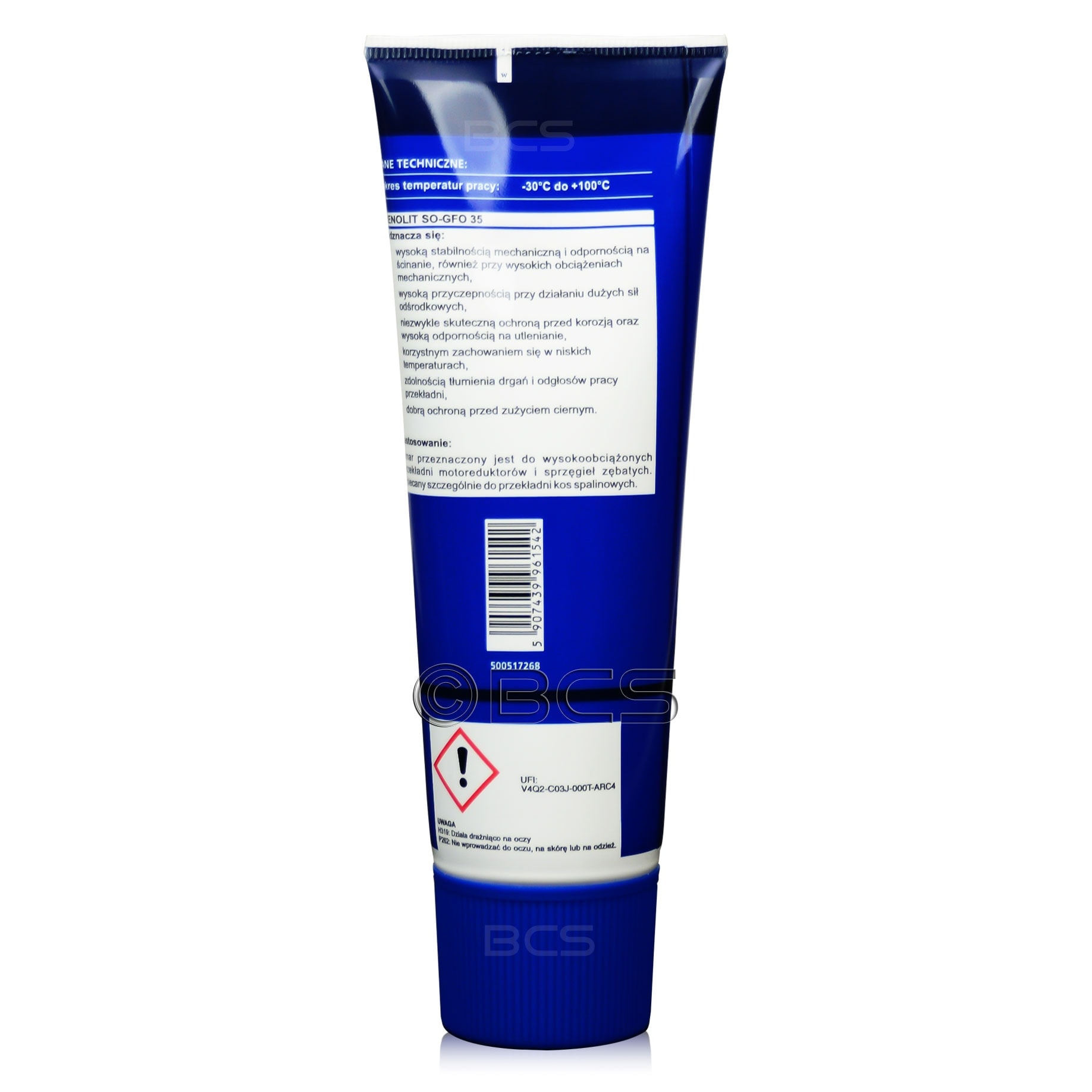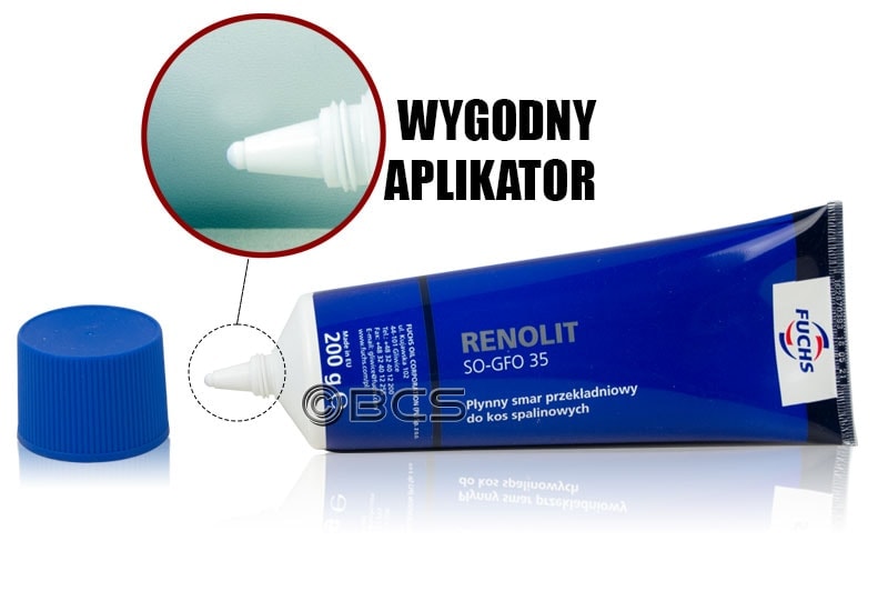 FUCHS RENOLIT SO-GFO 35 to płynny smar przekładniowy, wykorzystywany najczęściej jako smar do kos spalinowych, opracowany na bazie mydła sodowego, przeznaczony do wysokoobciążonych przekładni, w tym przekładni kątowych, motoreduktorów, sprzęgieł zębatych, które nie są szczelnie obudowane.