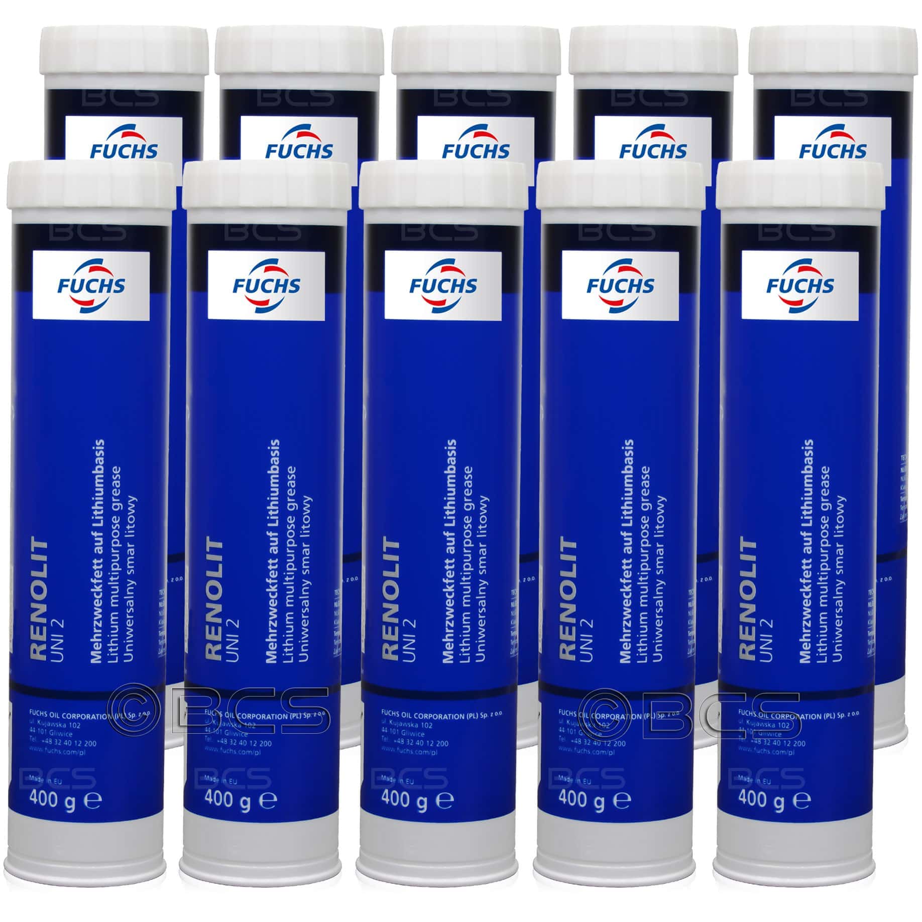 10 sztuk FUCHS RENOLIT UNI 2 - uniwesalny smar litowy NLGI 2 [-30°C do +120°C] - 400 g - ZESTAW - TANIEJ