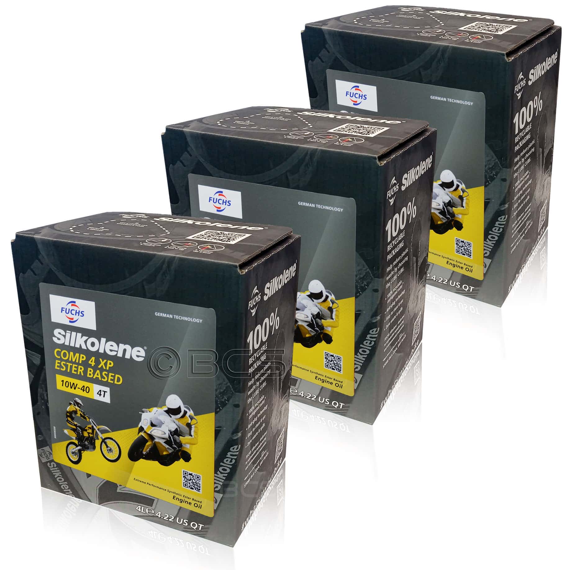 Olej silnikowy SILKOLENE COMP 4 10W40 XP jest dedykowany do silników chłodzonych cieczą, a także do chłodzonych powietrzem. Jego lepkość i właściwości są rekomendowane przez większość producentów motocykli. Właściwości estrów i zastosowana technologia XP TECHNOLOGY w oleju FUCHS SILKOLENE COMP 4 10W40 XP, uodparniają olej na ścinanie i pozwalają na stabilne utrzymanie lepkości w szerokim zakresie temperatur. Pakiet dodatków umożliwia utrzymanie w wysokiej czystości wnętrze silnika, minimalizując powstawanie nagarów i osadów, a także zapewnia ochronę antykorozyjną i odporność na nitrację i utlenianie.