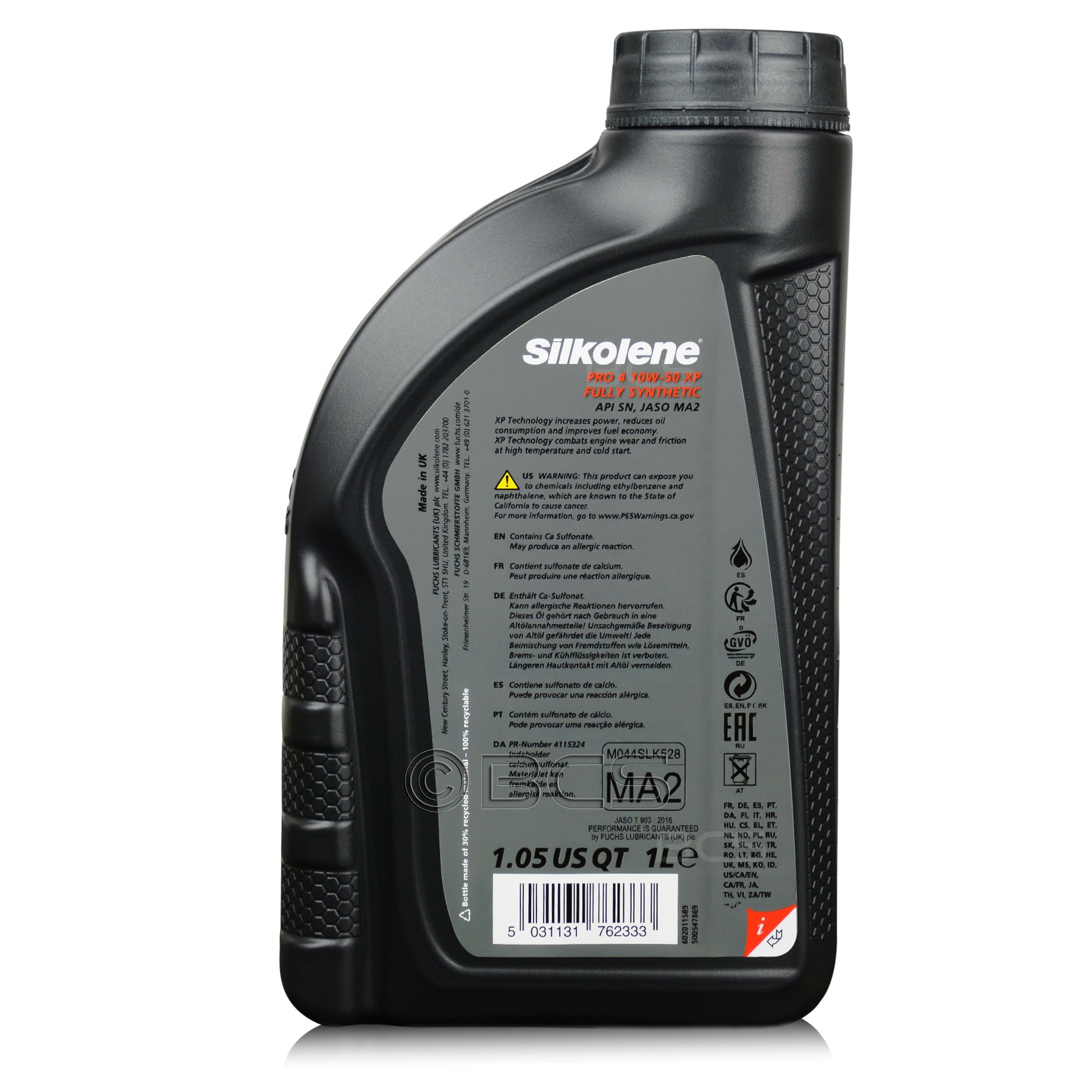 FUCHS SILKOLENE PRO 4 10W50 XP to estrowy, w pełni syntetyczny (FULLY SYNTHETIC) olej silnikowy do motocykli z silnikami 4-suwowymi (4T). Olej posiada lepkość SAE 10W-50.
