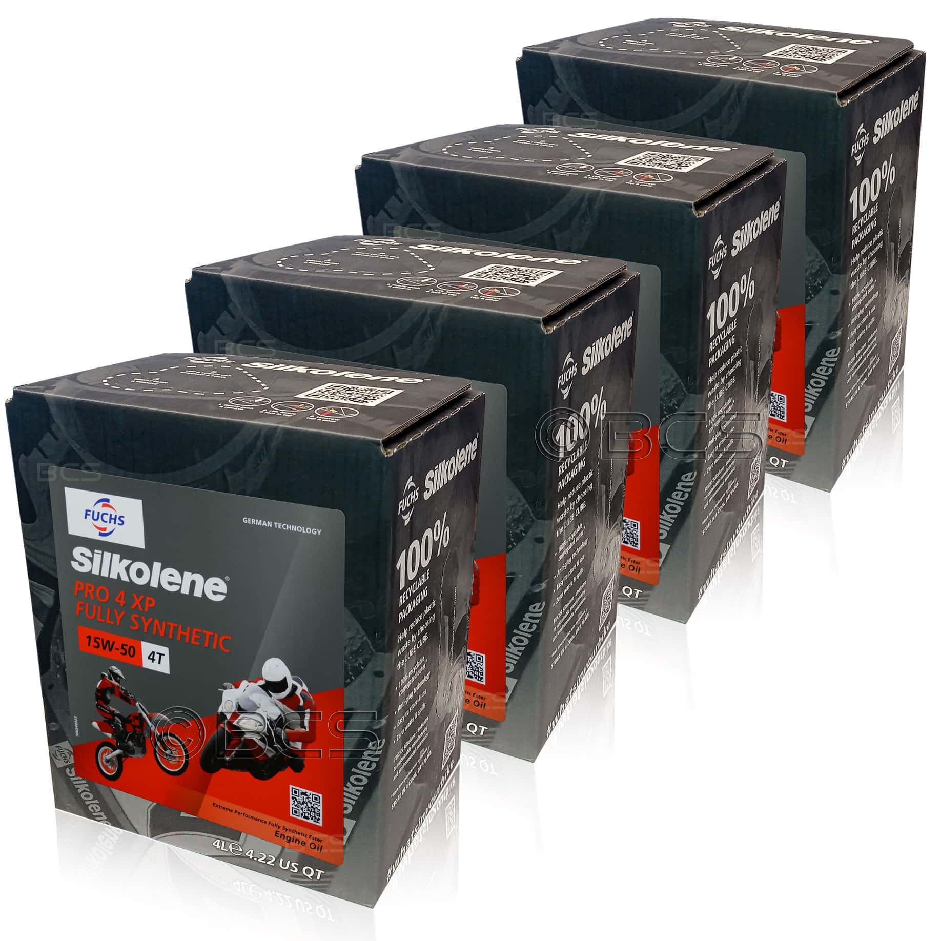 FUCHS SILKOLENE PRO 4 15W50 XP to oparty na estrach, w pełni syntetyczny (FULLY SYNTHETIC) olej silnikowy do silników 4-suwowych (4T) w motocyklach, dedykowany do mocno obciążonych silników.