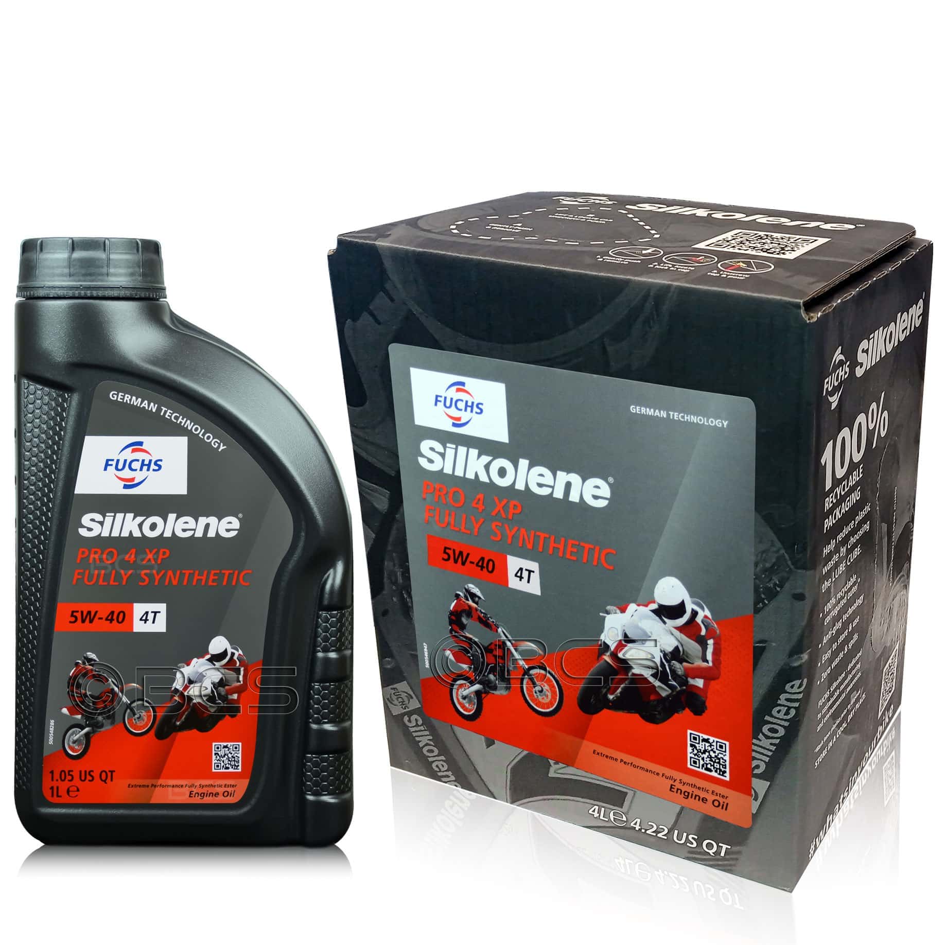 FUCHS SILKOLENE PRO 4 5W40 XP to w pełni syntetyczny (FULLY SYNTHETIC), oparty na estrach olej silnikowy do motocykli z silnikami 4-suwowymi (4T).