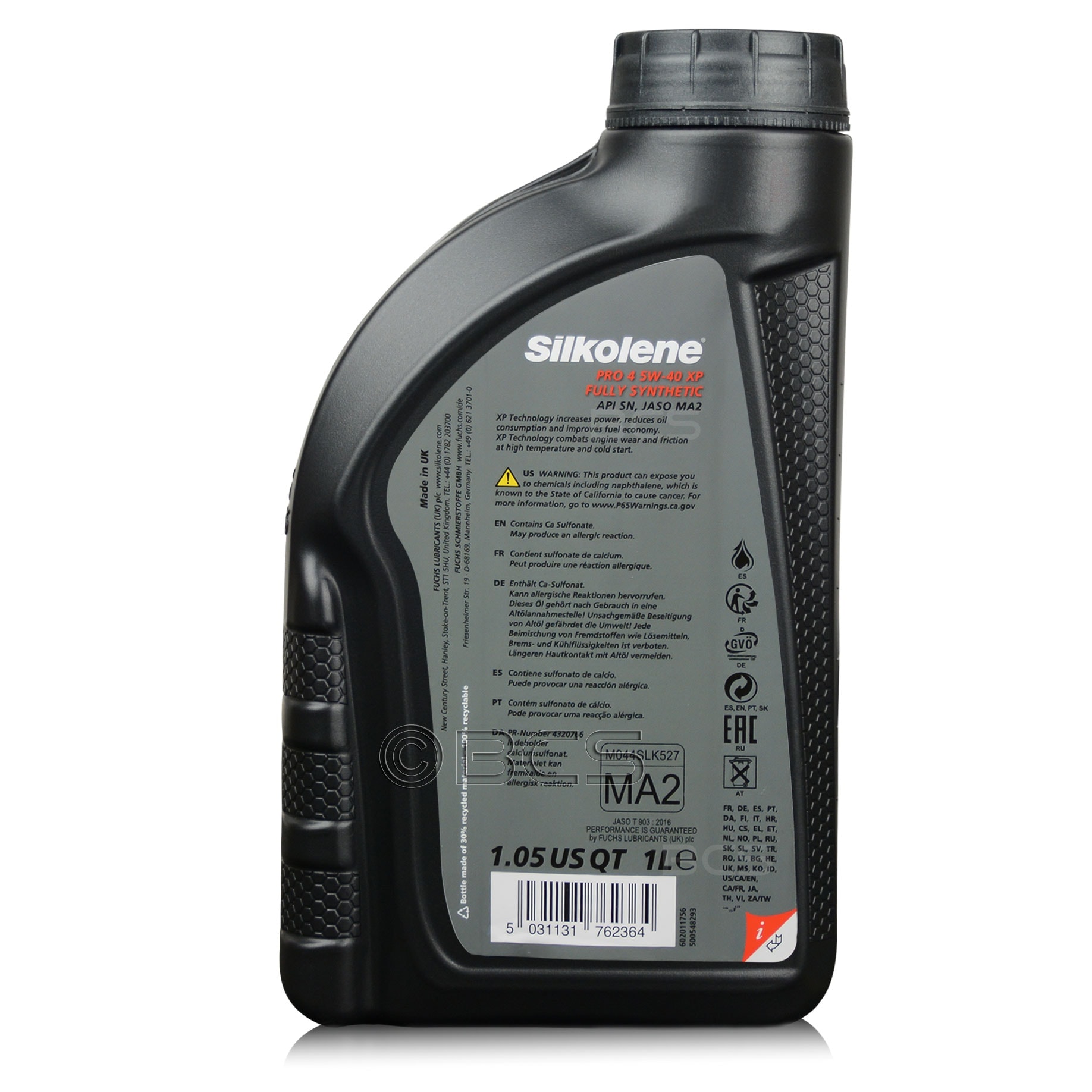 FUCHS SILKOLENE PRO 4 5W40 XP to w pełni syntetyczny (FULLY SYNTHETIC), oparty na estrach olej silnikowy do motocykli z silnikami 4-suwowymi (4T).
