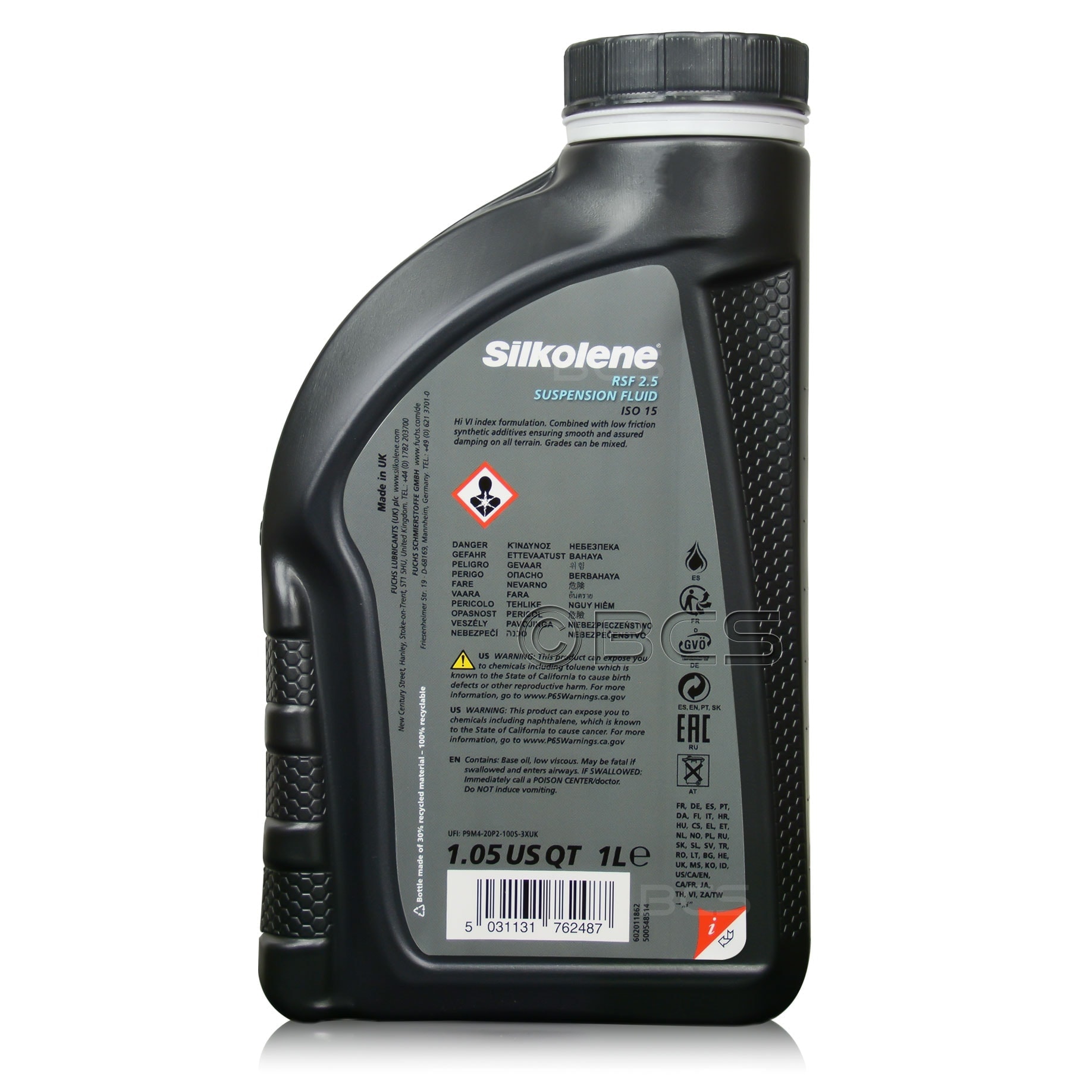 FUCHS SILKOLENE RSF 2,5 (fork oil, suspension fluid) to olej do zawieszeń motocyklowych, dedykowany do uniwersalnego zastosowania w jeździe zarówno wyścigowej, jak i terenowej, a także zwykłej drogowej. SILKOLENE RSF 2,5 to olej do amortyzatorów motocyklowych z linii produktów do zawieszeń, który posiada klasyfikację lepkości ISO 15.