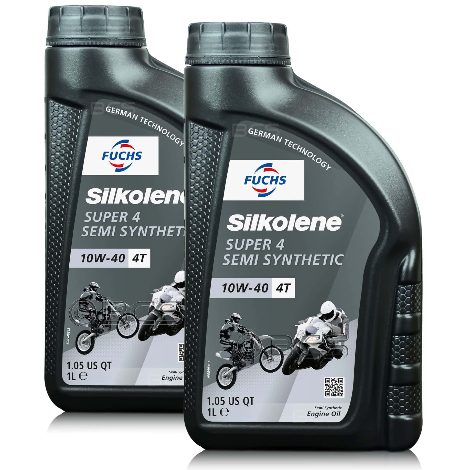 FUCHS SILKOLENE SUPER 4 10W40 to półsyntetyczny olej silnikowy do motocykli z silnikami 4-suwowymi (4T). Olej posiada lepkość SAE 10W-40