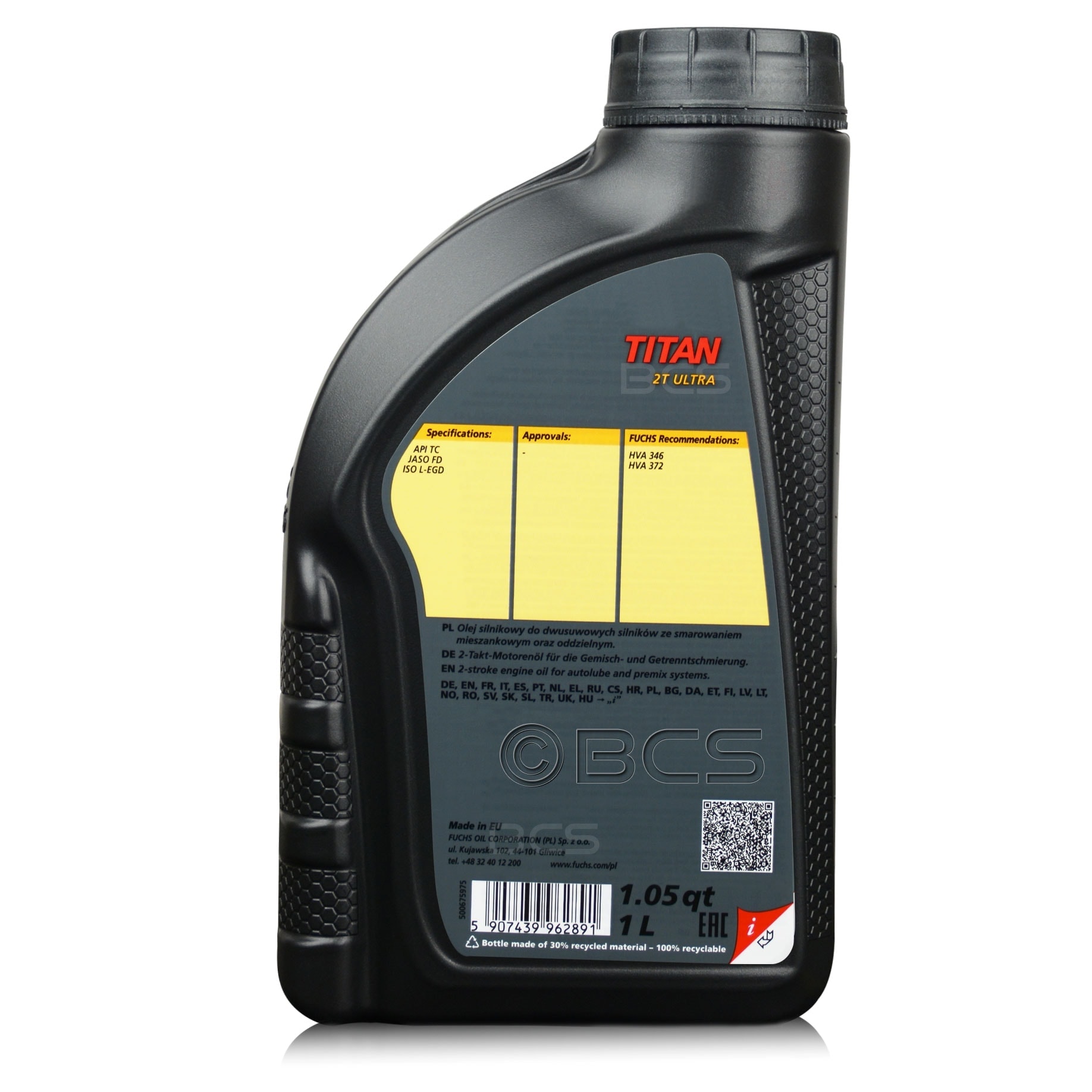 FUCHS TITAN 2T ULTRA to najwyższej jakości olej do silników dwusuwowych, stosowany w formie mieszanki lub w systemach dozujących, zapewniający taki sam poziom wydajności jak produkty oparte na syntetycznych olejach bazowych.
