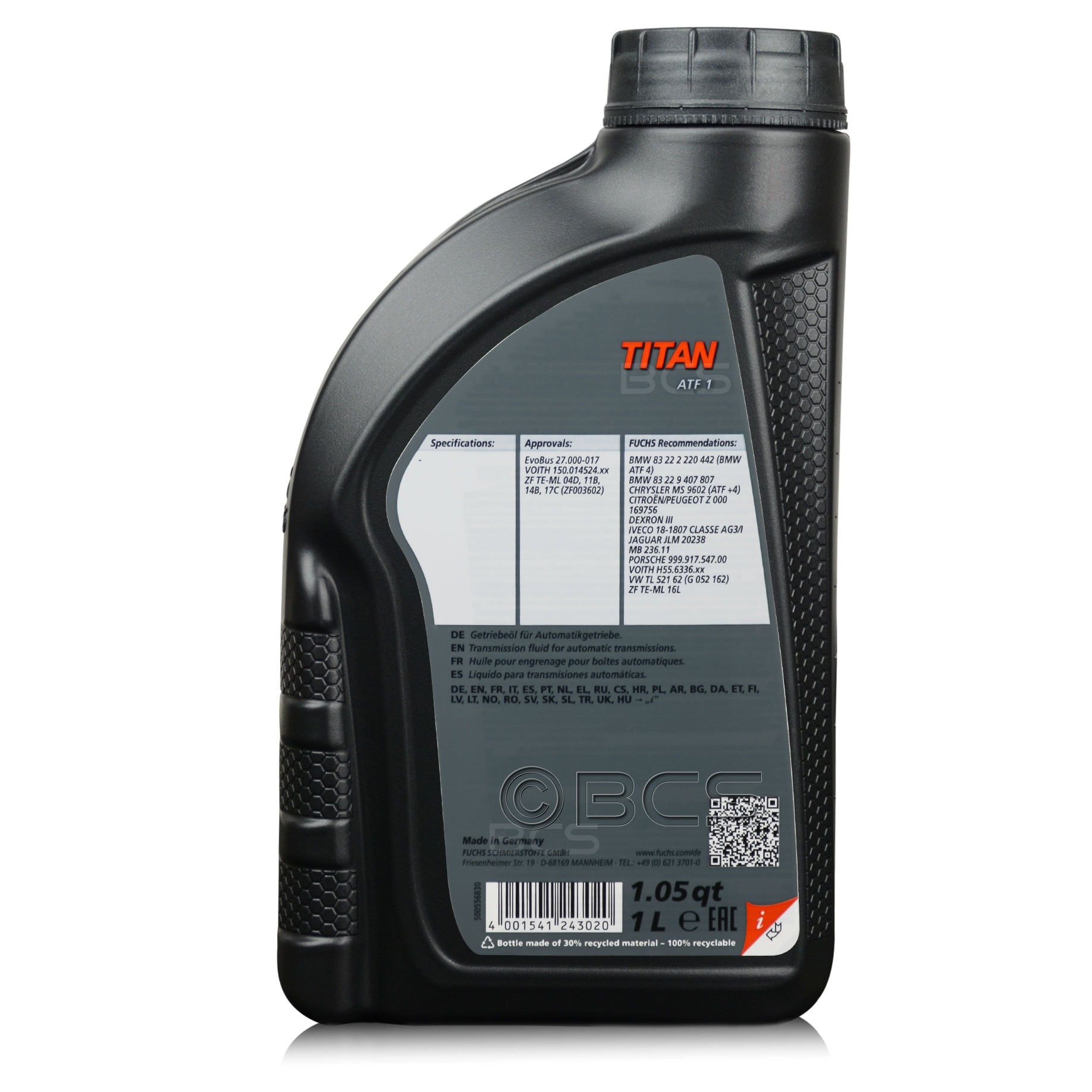 Olej do automatycznych skrzyń biegów FUCHS TITAN ATF 1 został opracowany na bazie wysokiej jakości olejów bazowych oraz starannie dobranych, nowoczesnych dodatków uszlachetniających, aby spełnić wymagania wysoko obciążonych przekładni automatycznych. Właściwości oleju gwarantują precyzyjną i płynną zmianę biegów, a także zapewniają wyjątkową stabilność olejów, co pozwala na bardzo długie okresy między wymianami. TITAN ATF1 świetnie sprawdza się w nowoczesnych, automatycznych skrzyniach biegów z tzw. blokadą przekładni hydrokinetycznej (mechanizm lock-up).