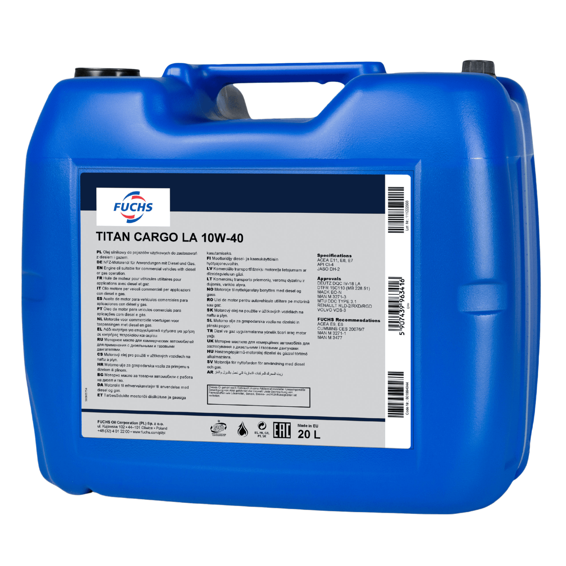 20 litrów FUCHS TITAN CARGO LA 10W40 - olej silnikowy