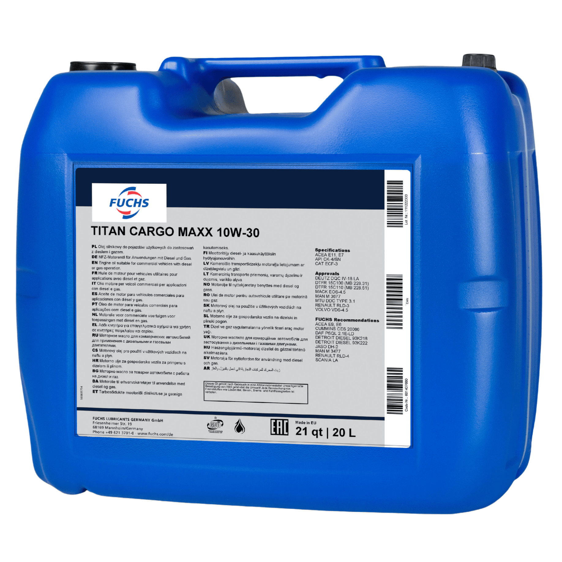 FUCHS TITAN CARGO MAXX 10W30 to najwyższej jakości paliwooszczędny olej silnikowy do pojazdów użytkowych, wyposażonych w silniki Diesla z turbosprężarkami i nowoczesnymi systemami oczyszczania spalin.