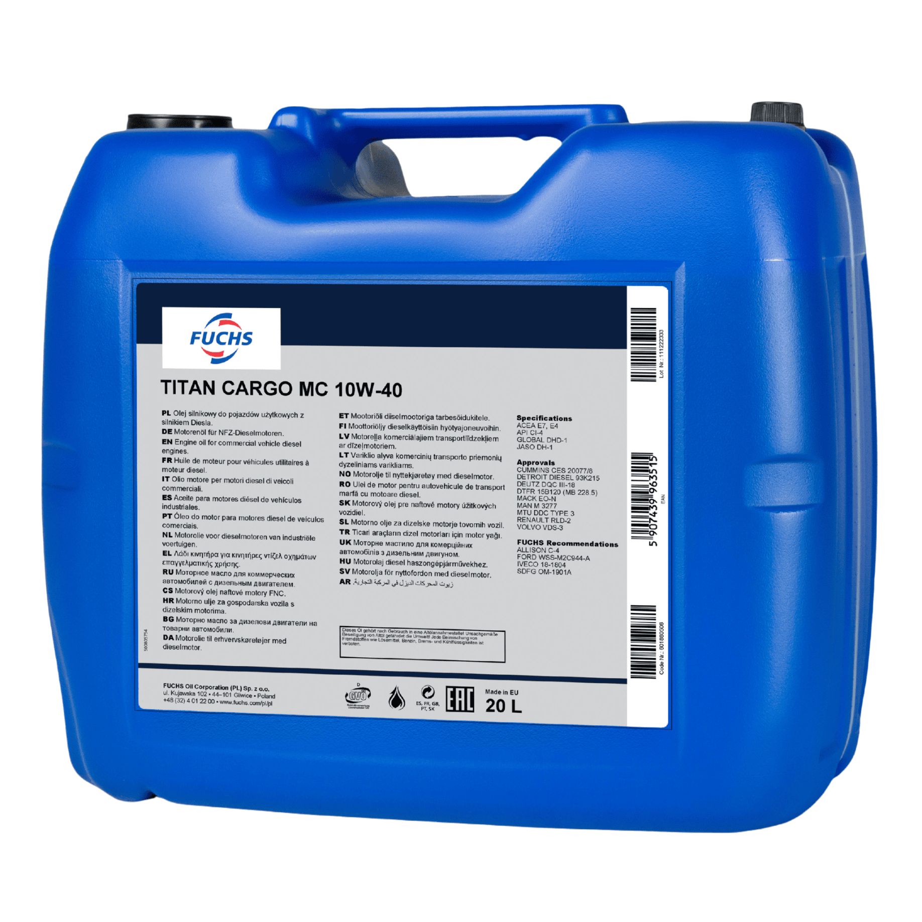 20 litrów FUCHS TITAN CARGO MC 10W40 - olej silnikowy