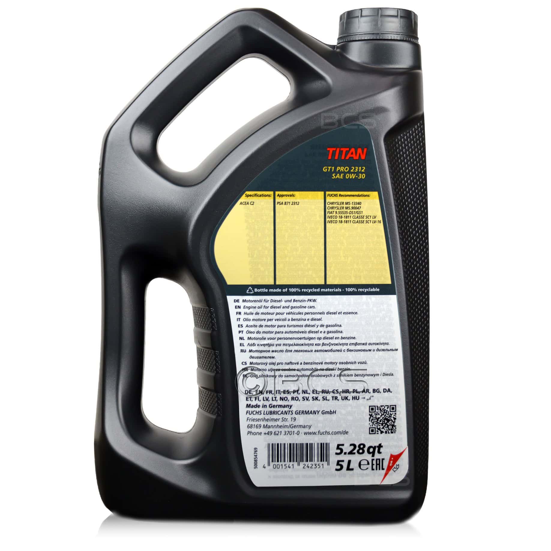 OLEJ SILNIKOWY FUCHS TITAN GT1 PRO 2312 0W30 - PSA B71 2312 - 5 LITRÓW
