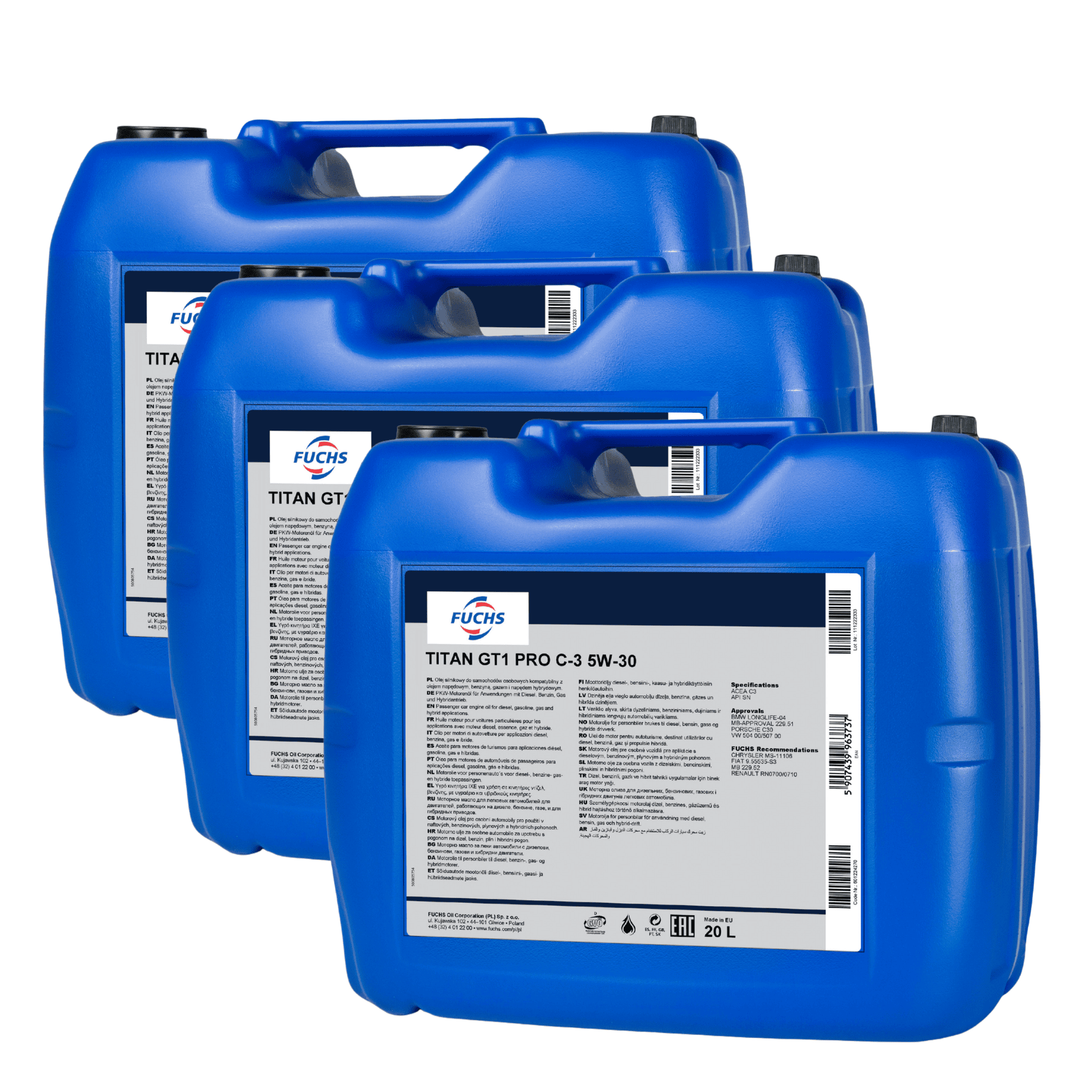60 litrów FUCHS TITAN GT1 PRO C3 5W30 - ACEA C3, API SN, VW 504 00/507 00, MB 229.51, BMW LL-04 - olej silnikowy - ZESTAW - TANIEJ