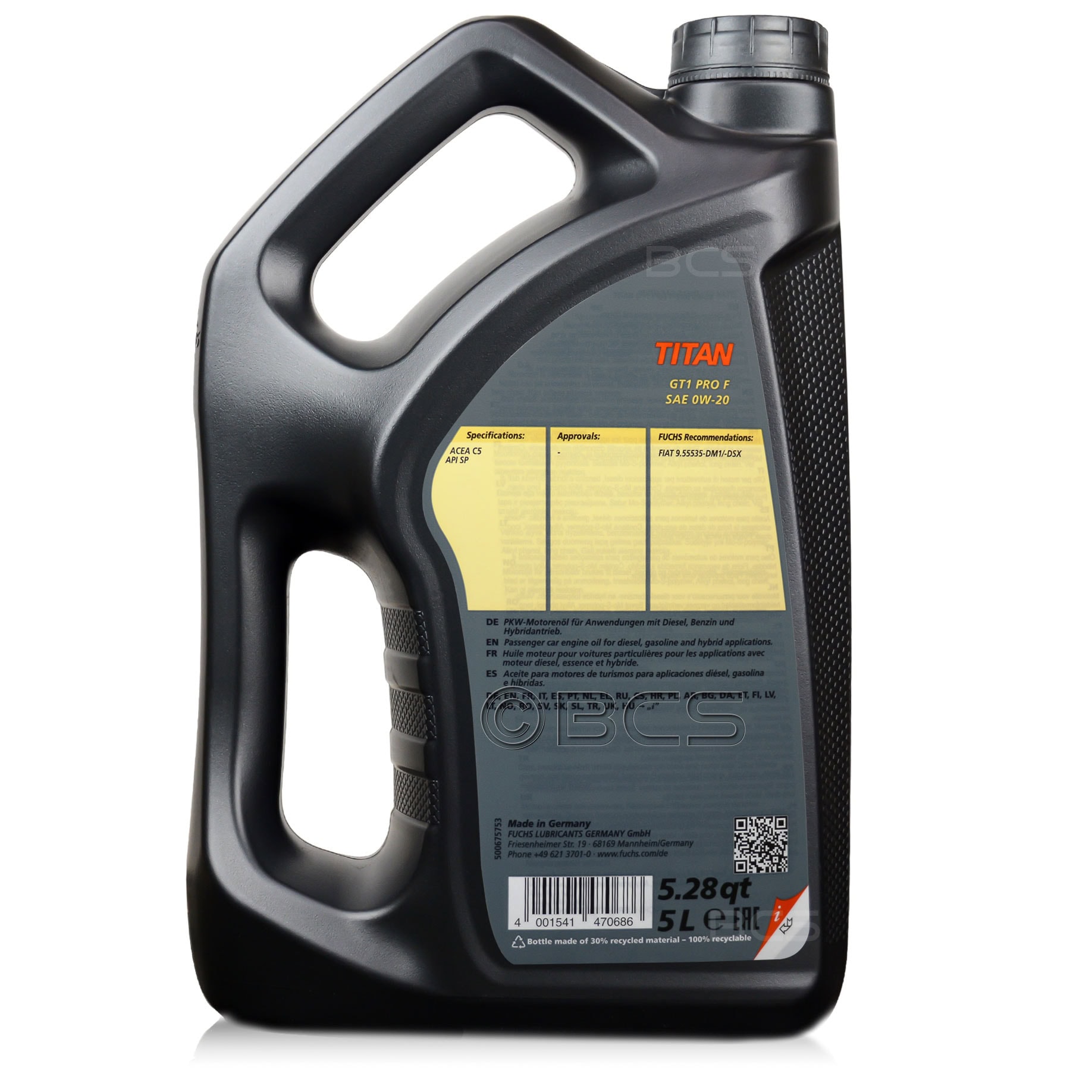FUCHS TITAN GT1 PRO F 0W20 to najwyższej jakości, paliwooszczędny, olej silnikowy o niskiej lepkości, dedykowany do samochodów osobowych marki FIAT, wymagających specyfikacji FIAT 9.55535-DM1 lub FIAT 9.55535-DSX.