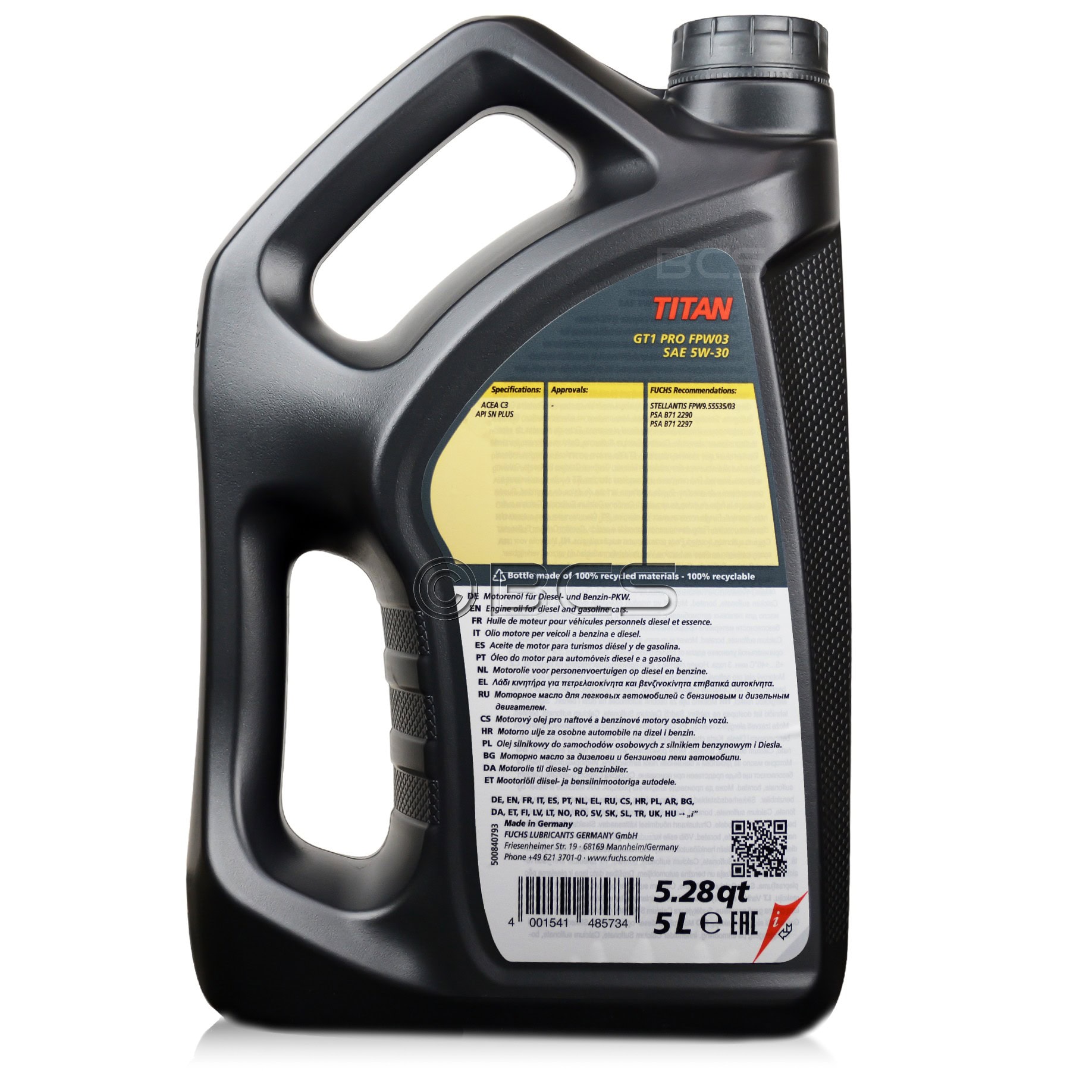 8 litrów FUCHS TITAN GT1 PRO FPW03 5W30 STELLANTIS FPW9.55535/03, ACEA C3, API SN PLUS - olej silnikowy - ZESTAW - TANIEJ
