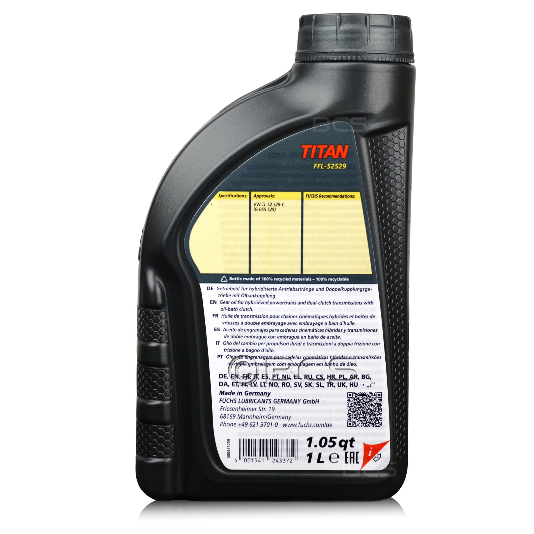 FUCHS TITAN FFL-52529 to najwyższej jakości olej przekładniowy w technologii XTL, do zastosowania w części sprzęgłowej dwusprzęgłowych skrzyń biegów DL382 i DQ381 grupy VW o symbolu 0CJ/0CK/0CL/0DN. Jest dokładnym odpowiednikiem oleju serwisowego VW G055529, spełniającym normę VW TL 52 529-C.