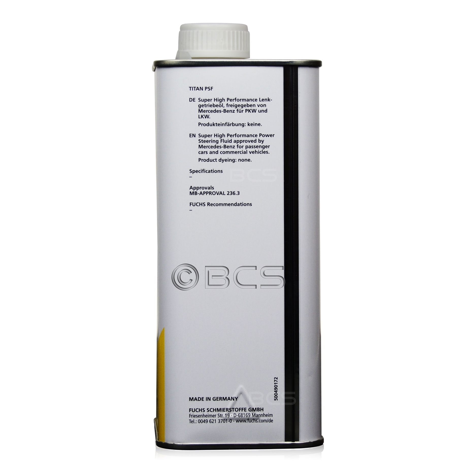 FUCHS TITAN PSF to najwyższej jakości olej - płyn do wspomagania układów kierowniczych i układów pomocniczych w samochodach marki MERCEDES, które wymagają płynu z normą MB 236.3.
